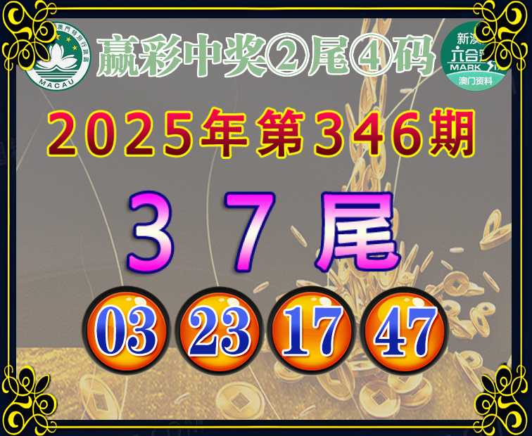 346期:『赢彩中奖』 🏇②尾④码🏇【37尾主:03.23.17.47】开:00准