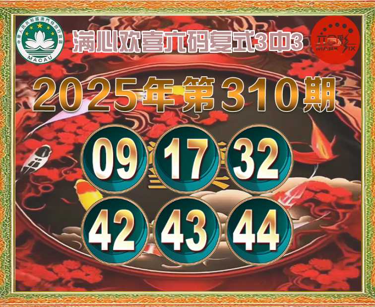 310期:【满心欢喜】 🍒六码复式3中3🍒