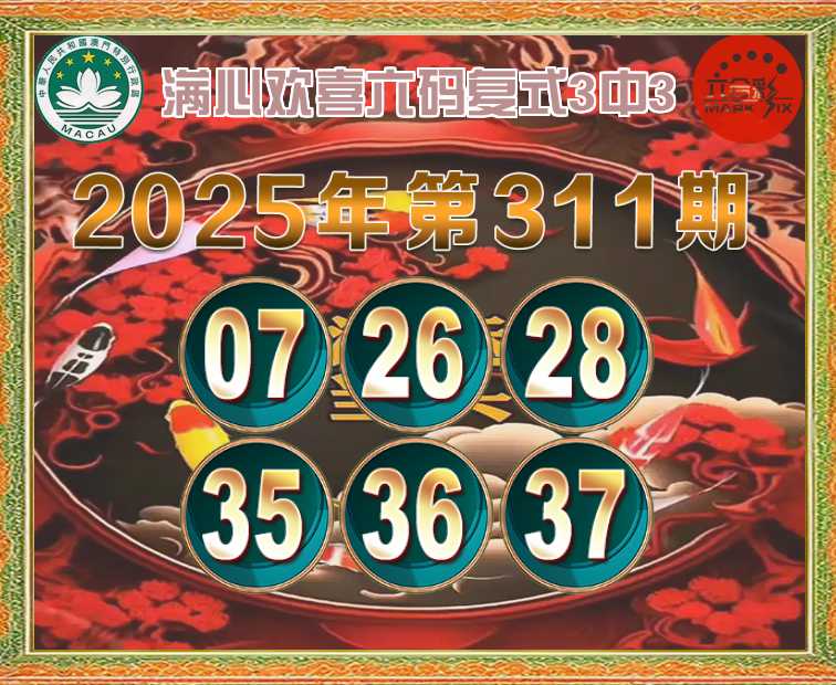 311期:【满心欢喜】 🍒六码复式3中3🍒
