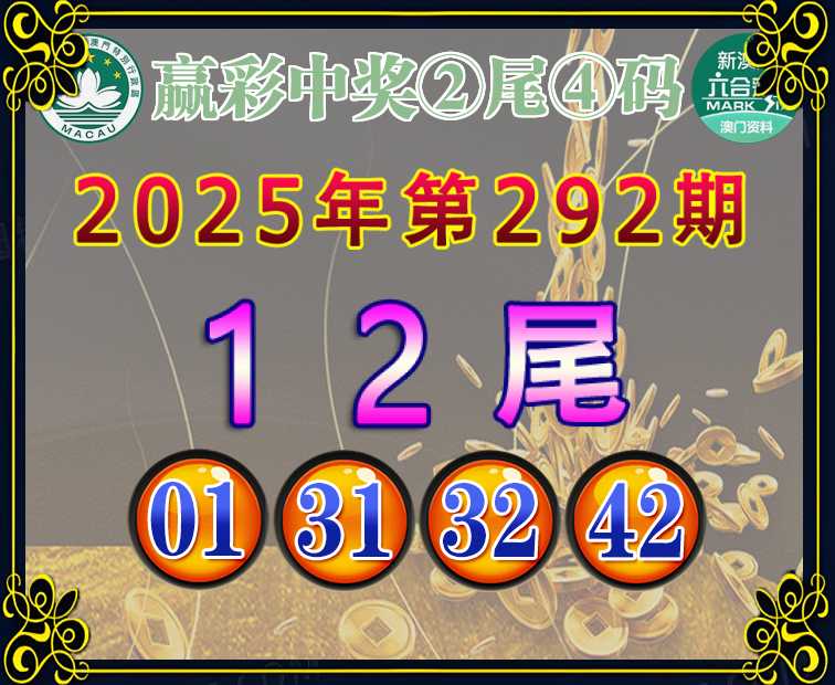 292期:『赢彩中奖』 🏇②尾④码🏇【12尾主:01.31.32.42】开:02