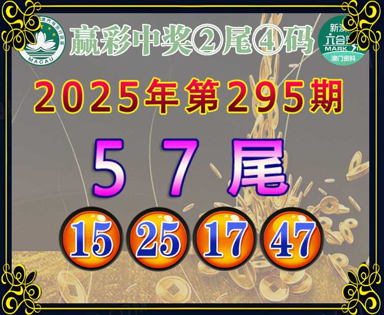 295期:『赢彩中奖』 🏇②尾④码🏇【57尾主:15.25.17.47】开:05