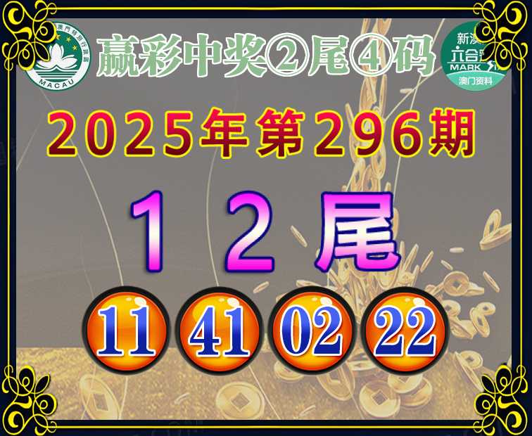 296期:『赢彩中奖』 🏇②尾④码🏇【12尾主:11.41.02.22】开:22