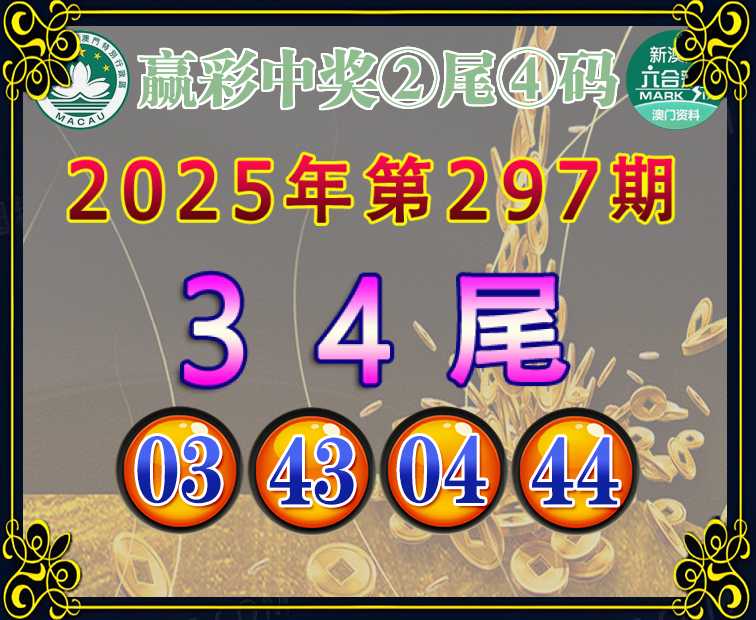 297期:『赢彩中奖』 🏇②尾④码🏇【34尾主:03.43.04.44】开:44