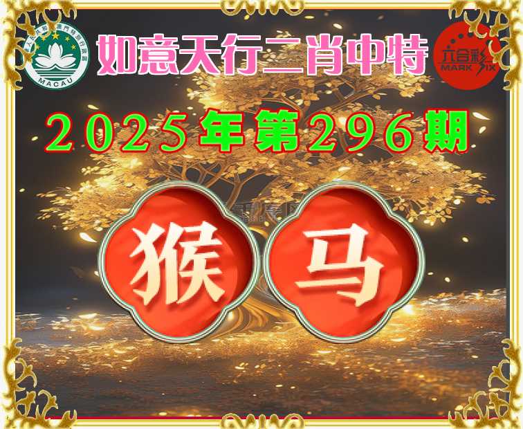 296期:《如意天行》  ♣️二肖中特 ♣️【.马】开:猴22