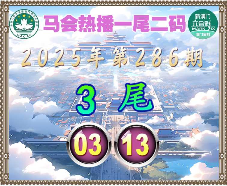 286期:『马会热播』 ⛩️一尾二码⛩️【3尾主:03.13】开:03