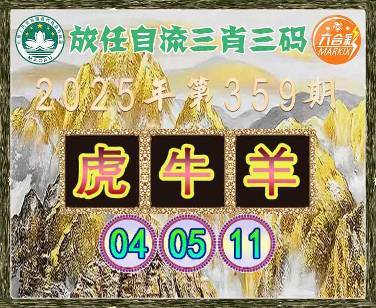 359期:【放任自流】 🤩三肖三码🤩【虎牛】【04.05.11】开:羊11