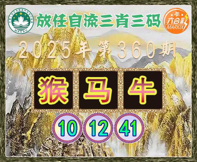 360期:【放任自流】 🤩三肖三码🤩【猴马】【10.12.41】开:牛41