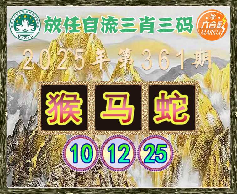 361期:【放任自流】 🤩三肖三码🤩【猴蛇】【10.12.25】开:马24