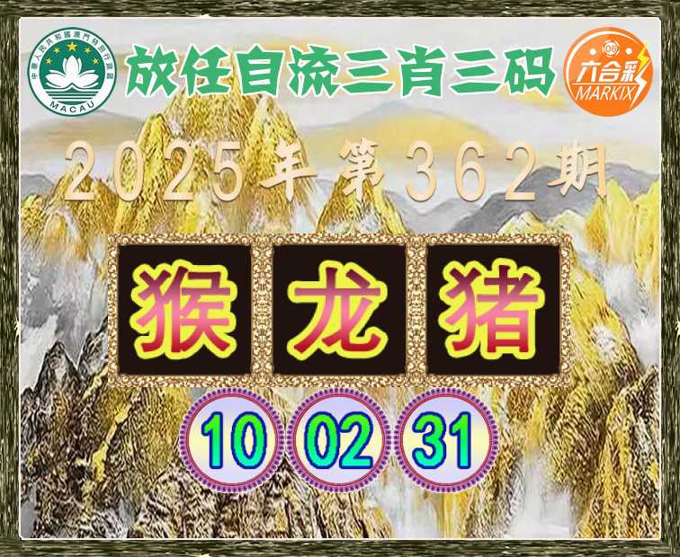 362期:【放任自流】 🤩三肖三码🤩【猴龙猪】【10.02.31】开:羊23