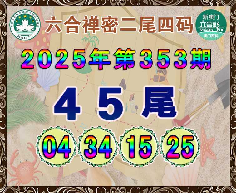353期:〖六合禅密〗 🌅二尾四码🌅【45尾主:04.34.15.25】开:01