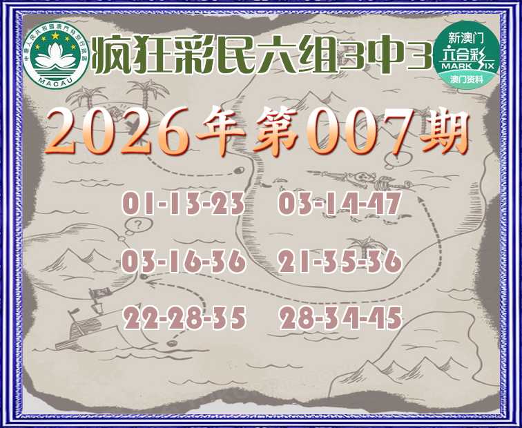 007期:  ♣️《疯狂彩民》  ♣️六组3中3 ♣️