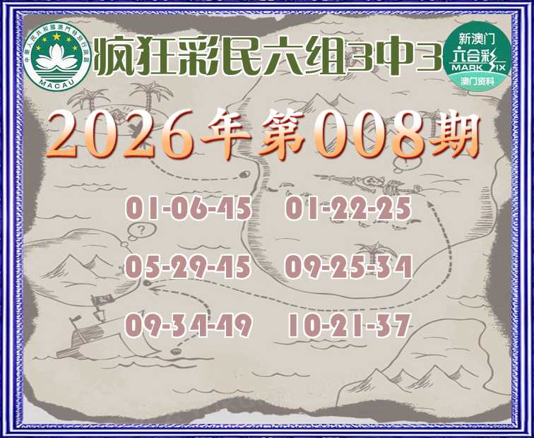 008期:  ♣️《疯狂彩民》  ♣️六组3中3 ♣️